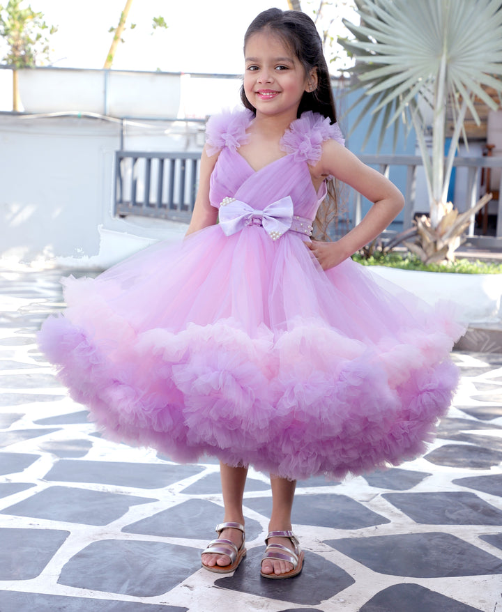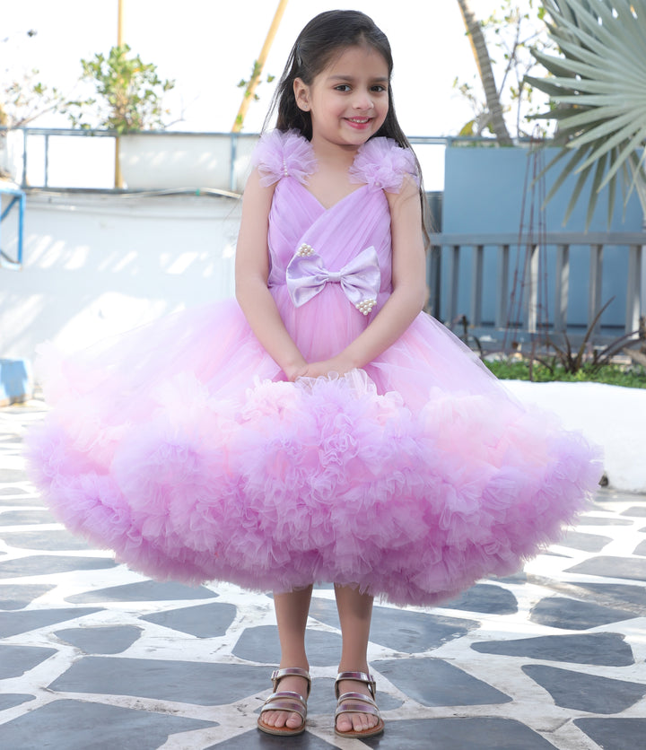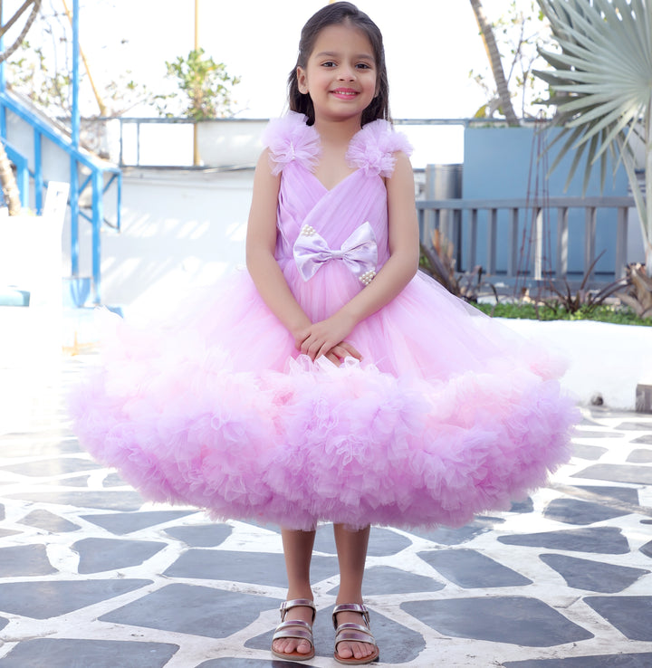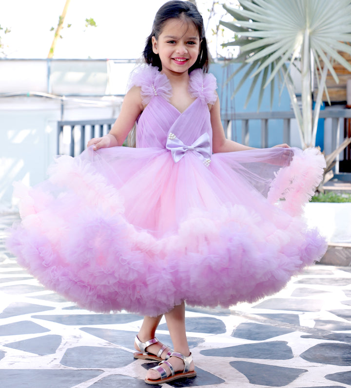 - A charming lavender and pink fit-and-flare dress that’s perfect for any special occasion.